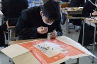 美術科での作品制作も大詰めです。色塗りが終わった生徒は、ニスを塗って完成させていました。