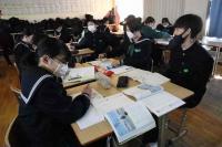 家庭科では、手縫いのエコバックの製作をしていました。また受験科目の教科では、来週の受験に向けて最後の追い込みを黙々としていました。