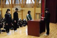 そして、生徒を代表して3年生の近藤さんが、「2学期に初めて学級委員となって活動して、自分に自信がついた。3学期は勉強を頑張ることと体調を整えることを意識して生活していきたい。」と述べました。
