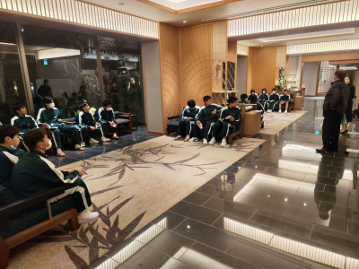 修学旅行1日目⑥(旅館) 2023年11月27日 18時27分 17時40分すぎに、旅館然林房に到着しました。 朝が早く、バス移動が長かったですが、全員元気です。 入館して、すぐに班長会を行いました。 入館式を終え、夕食を食べました。残食0を目指し昼食に続いてしっかり食べました。