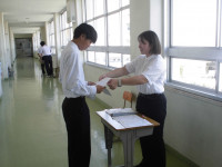 放課後には、3年生の高校体験入学の事前指導を行いました。自分が参加する高校の集合時間や持参物など担当教師と確認していました。