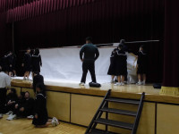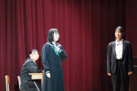 ここからは、南中の伝統行事の人権啓発劇「ともに~虹がかかる空~」を上映しました。3年生が中心となって、これまで熱心に練習してきた成果を見ていただきました。
