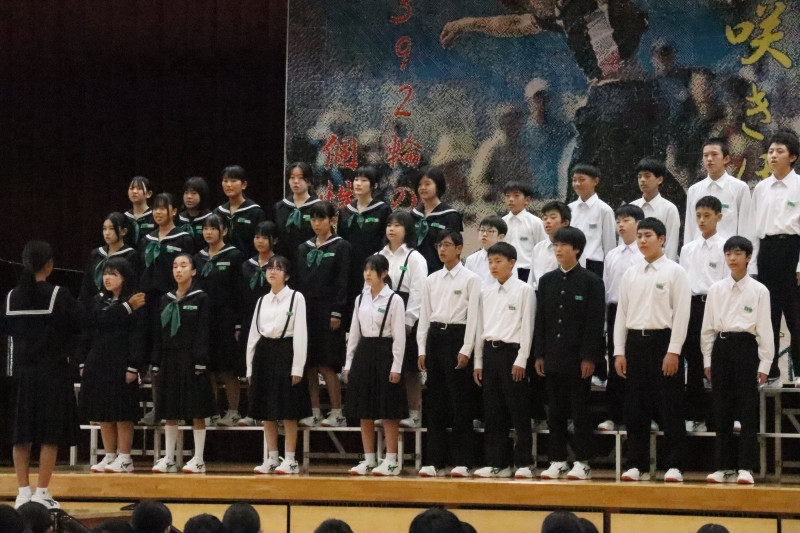 発声練習もないままの合唱だったので、声が出にくかったようですが、クラスによっては毎日の練習の成果を発揮して、堂々と歌い上げていました。