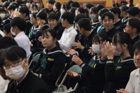 各部長からの決意の言葉が終わると、どの教室からも大きな拍手が送られていました。選手の皆さん、西条南中の代表として、西条市の代表として、自分たちの力を精一杯発揮して、一つでも多く勝ち上がってきてください。