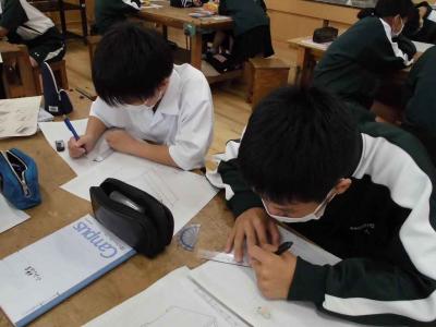 技術科では、本立ての製図を行っていました。どの図も丁寧に描かれており、実際に製作を始められそうです。